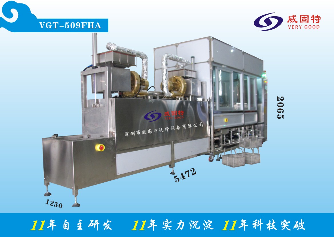 威固特VGT-509FHA活塞配件自動智能式超聲波清洗機清洗流程:自動上料→1超聲粗洗28K→2超聲精洗40K→3超聲純水漂洗28K→4超聲DI純水漂洗40K→5熱風烘干→自動下料。