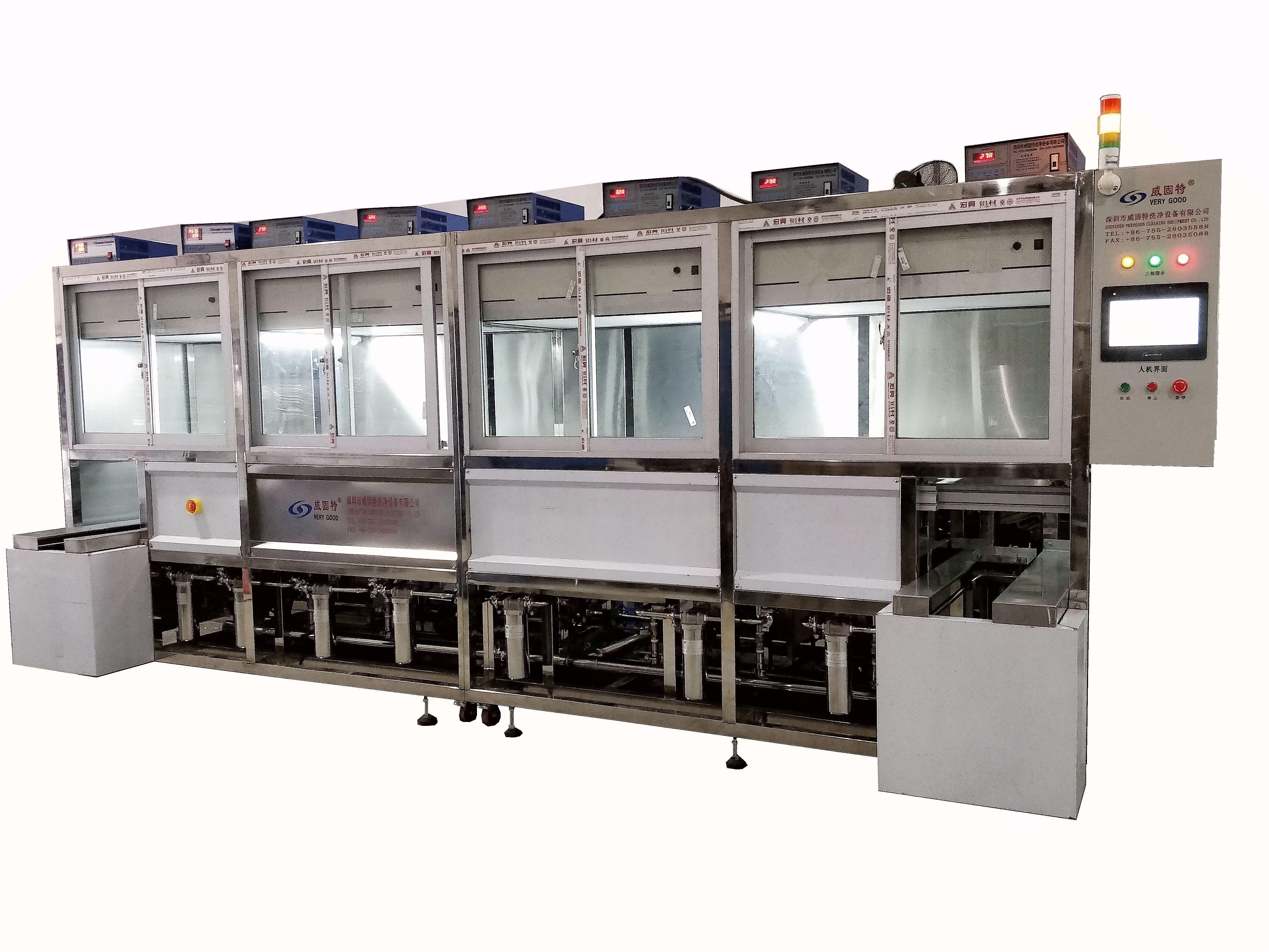 威固特全自動(dòng)石英晶振監(jiān)控片深圳超聲波清洗機(jī)設(shè)備共有8個(gè)功能槽,配置有循環(huán)過(guò)濾系統(tǒng)、自動(dòng)恒溫系統(tǒng)、觸摸屏系統(tǒng)、拋動(dòng)系統(tǒng)、超聲波清洗系統(tǒng)、預(yù)熱箱系統(tǒng)、溢流系統(tǒng)、噴淋系統(tǒng)等。