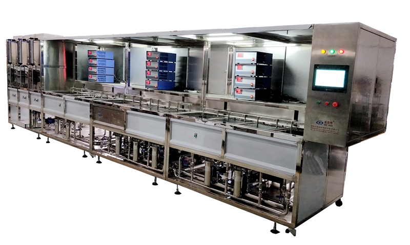 深圳威固特DLP棱鏡超聲波清洗機VGT-1407FH為鍍膜后光學超聲波清洗機,設備共有14個功能槽,配置有浸泡系統、過濾循環系統、自動恒溫系統、拋動系統、超聲波清洗系統、慢拉脫水系統等